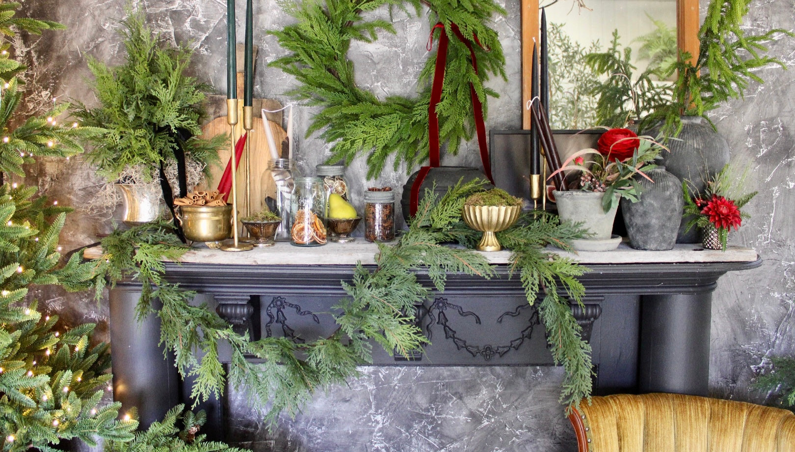 Antique bells, velvet and satin ribbon, cozy lights and accessories