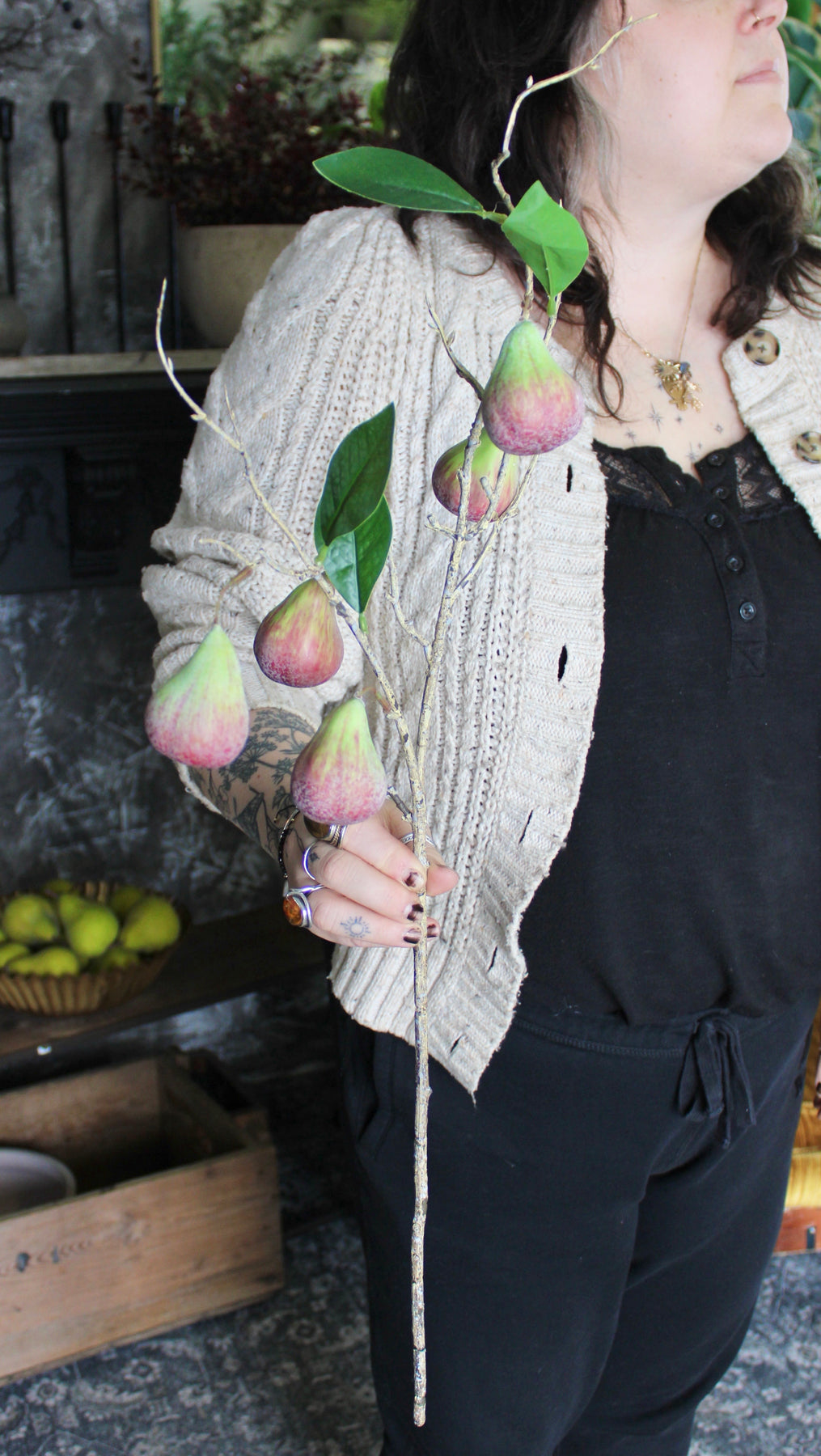 Enhance your space with this expertly crafted faux fig branch featuring lifelike fruit (x5) and foliage. Designed for realism, it brings natural beauty without maintenance, perfect for sophisticated décor or  arrangements. The detailed textures and vibrant colours offer an authentic touch, elevating any setting with subtle elegance.