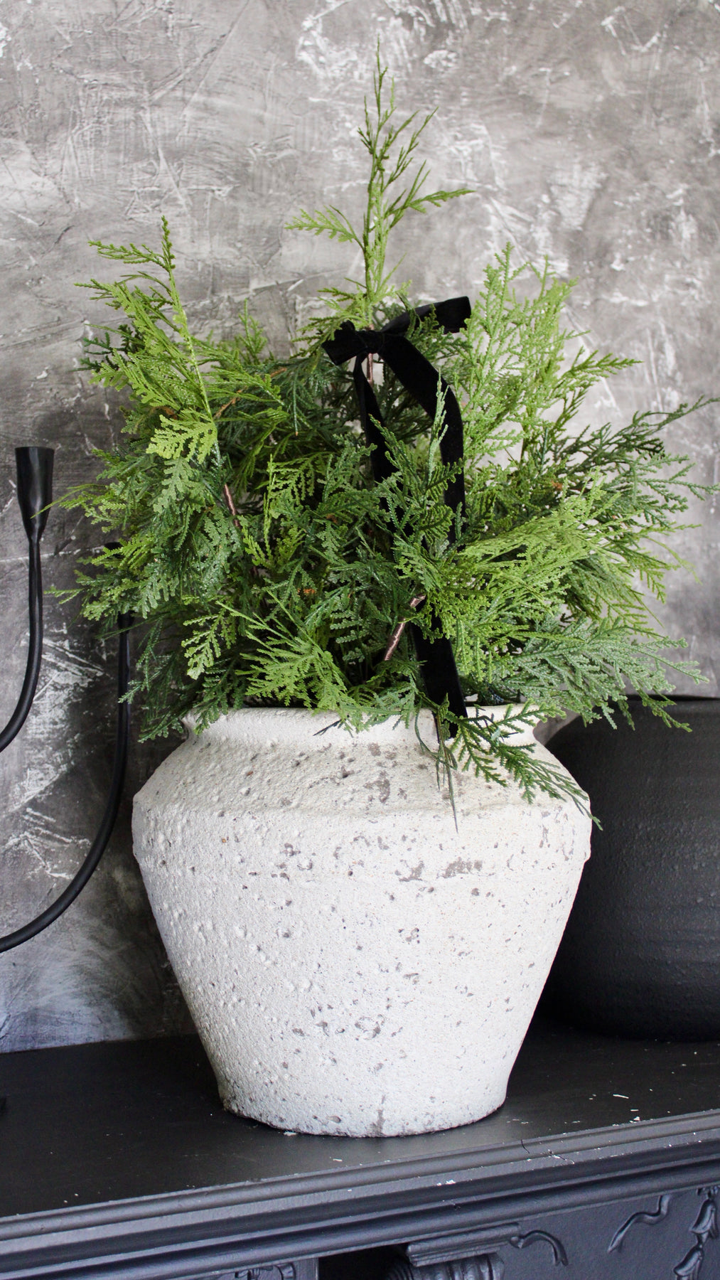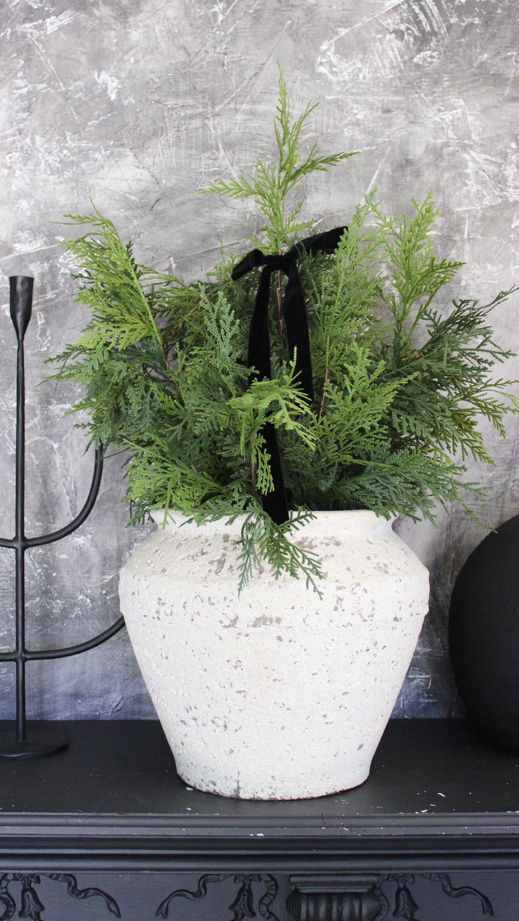 ***Tuscan Stone Pot and Black Velvet Bow sold separately.
