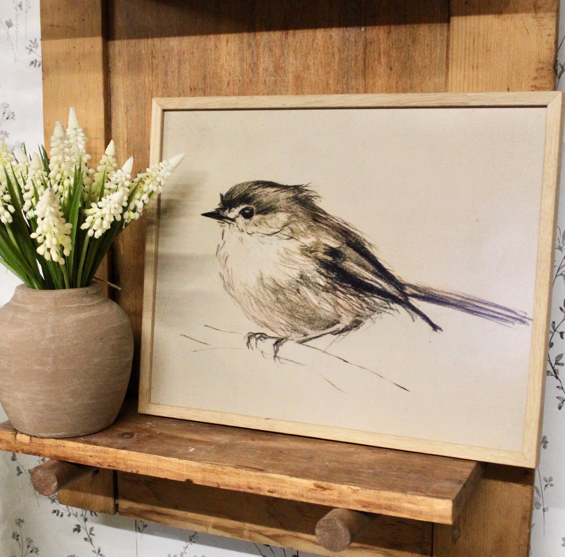 Elevate your space with this refined bird art print, thoughtfully presented in a natural wooden frame. The sophisticated illustration captures avian beauty with artistic precision, making it an ideal accent for modern or traditional interiors. Perfect for gallery walls, living rooms, or studies, this piece brings a touch of nature-inspired elegance to any environment. The quality wooden frame complements both the artwork and your décor, creating a polished, gallery-ready presentation that requires no additional framing.