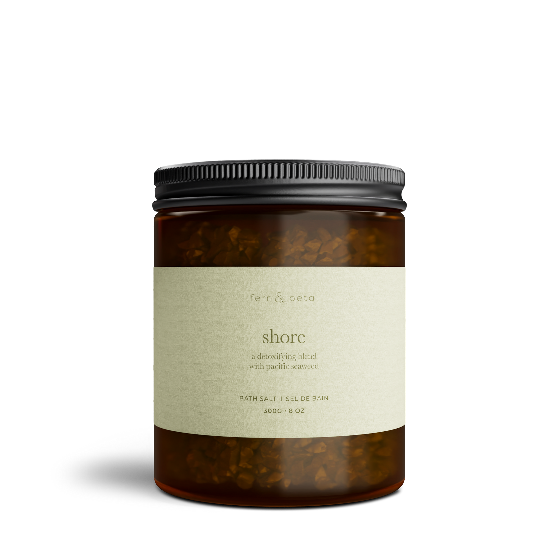 Shore captures the natural healing powers and self-sustaining qualities of the ocean. A unique blend of Lavender, Eucalyptus and Peppermint essential oils, mineral-rich ocean salt and Pacific seaweed for deep, long-lasting hydration, Shore also features Spirulina, packed with nutrients and antioxidants for an extra moisturizing boost.