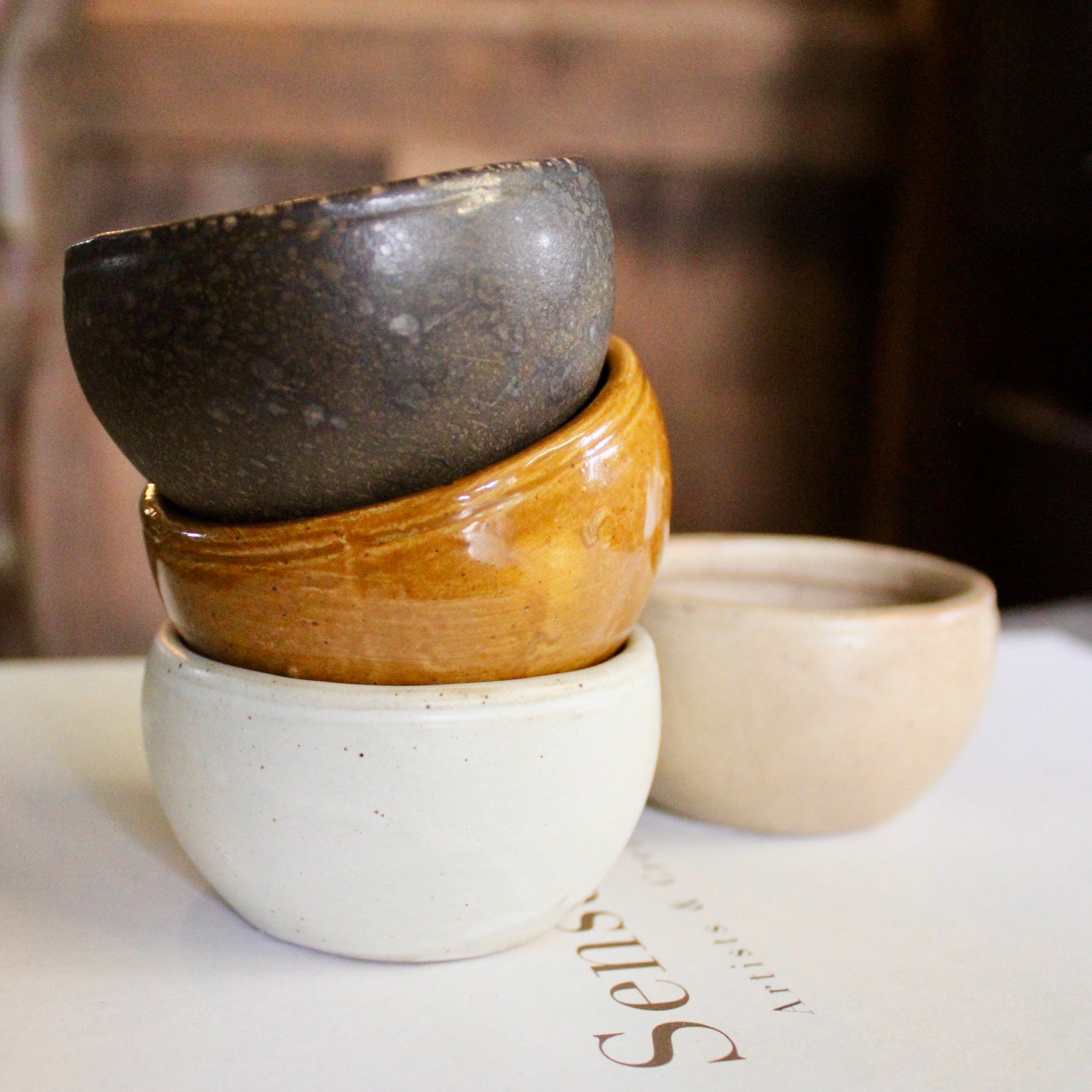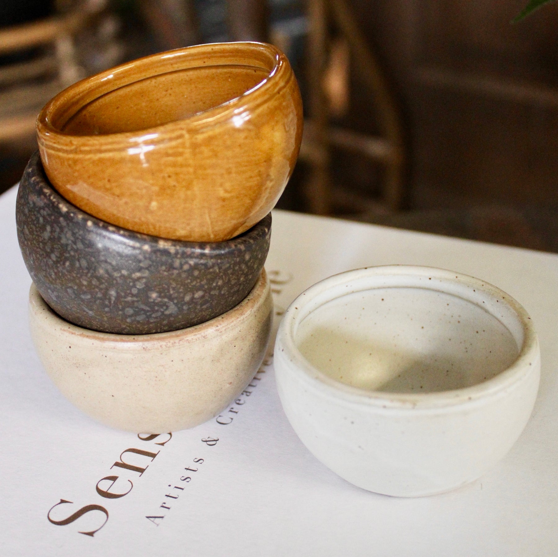 Beautiful stoneware pinch pots to showcase your favourite small treasures. Choose from four distinct colour/styles, each perfect for displaying miniature faux plants, storing jewelry, or organizing knick knacks on shelves and desks. The organic, tactile finish of each pot adds warmth to any space while keeping your essentials within reach.