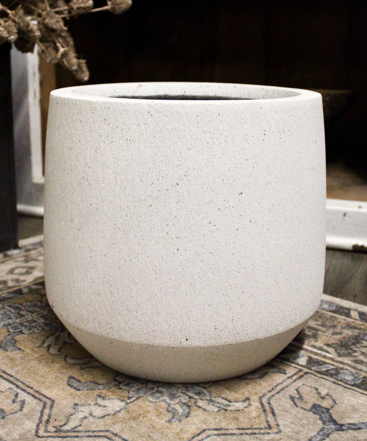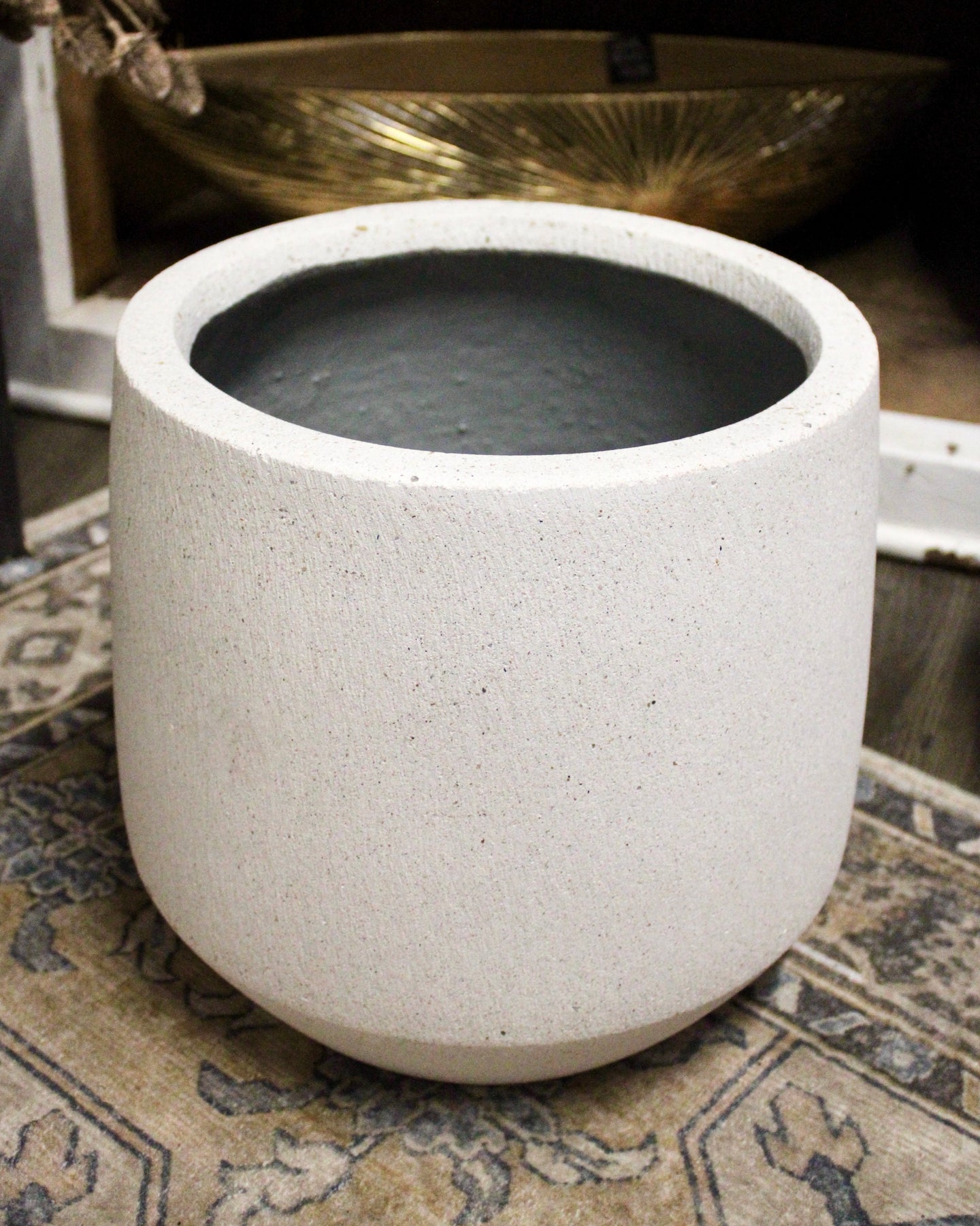 Expertly crafted from a mixture of fibreglass, cement, sand, and crushed stone, our WhiteFiconstonePot offers style, durability and relatively light weight. Suitable for indoor and outdoor use, this versatile pot is a must-have for any decorating needs.