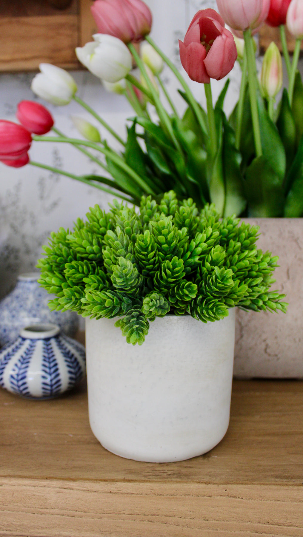 Elevate your interior with this faux Brussels plant, meticulously crafted to capture the botanical elegance of living greenery without the maintenance demands. Nestled in a sleek white pot, it brings refined natural beauty to any room—from modern minimalist spaces to contemporary interiors. Perfect for desks, shelves, or entryways, this lifelike accent piece adds sophisticated charm while remaining perpetually fresh and vibrant. An ideal choice for those seeking timeless botanical style with zero upkeep.