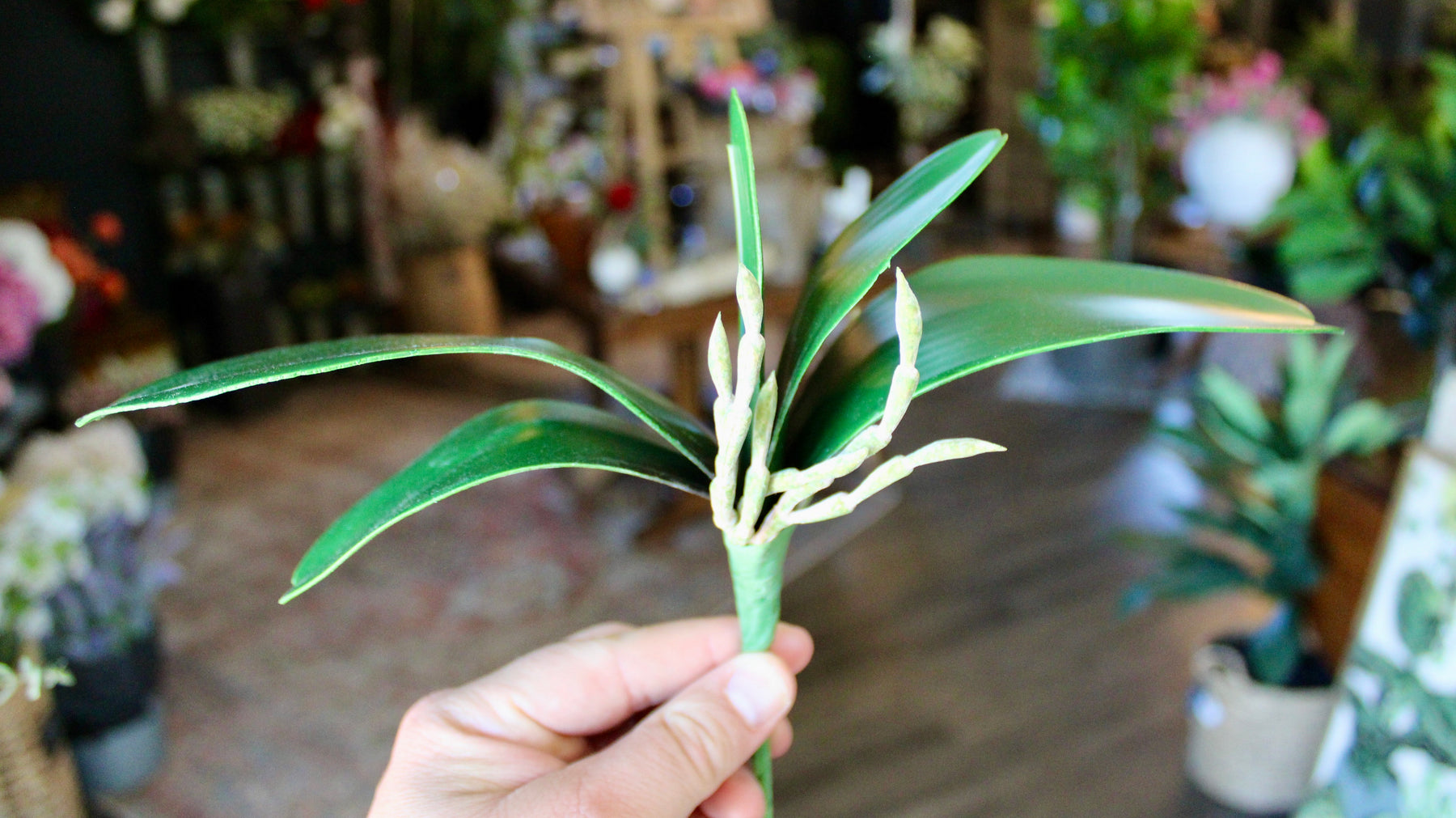 These faux Orchid Leaves are expertly crafted to replicate the intricate details of natural orchid foliage. These high-quality faux leaves feature realistic textures and authentic root structures, providing a refined and durable solution for professional floral designs. Ideal for enhancing arrangements or interior spaces, they offer the elegance of real orchids without the need for maintenance.