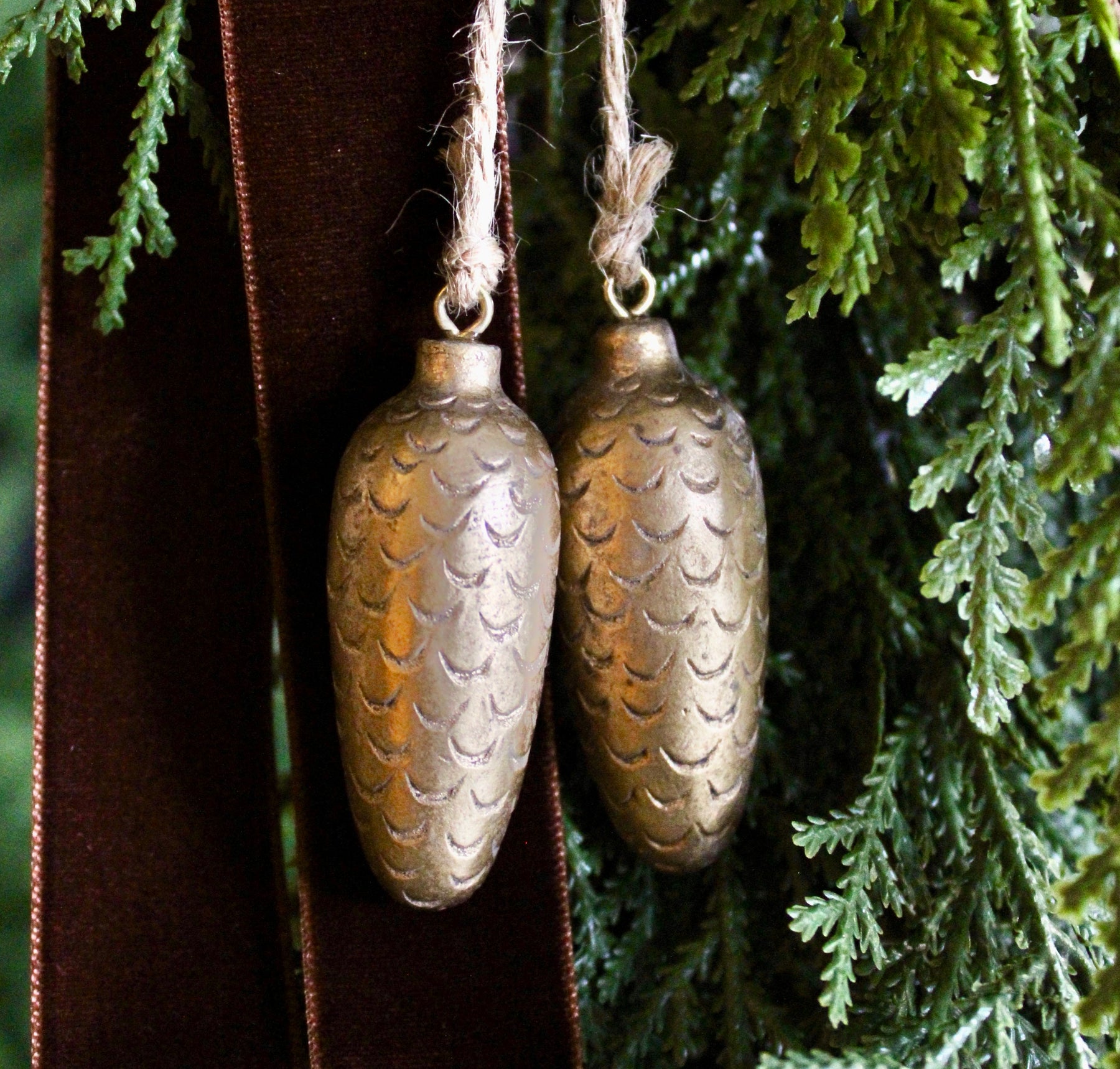 Transform your festive displays with these exquisite gold metal acorn and pinecone ornaments. Designed with refined craftsmanship, they seamlessly enhance Christmas trees, garlands, wreaths, and decorative arrangements throughout your home. Their sculptural forms add dimensional interest and understated luxury to any holiday setting, creating a curated aesthetic that endures season after season.