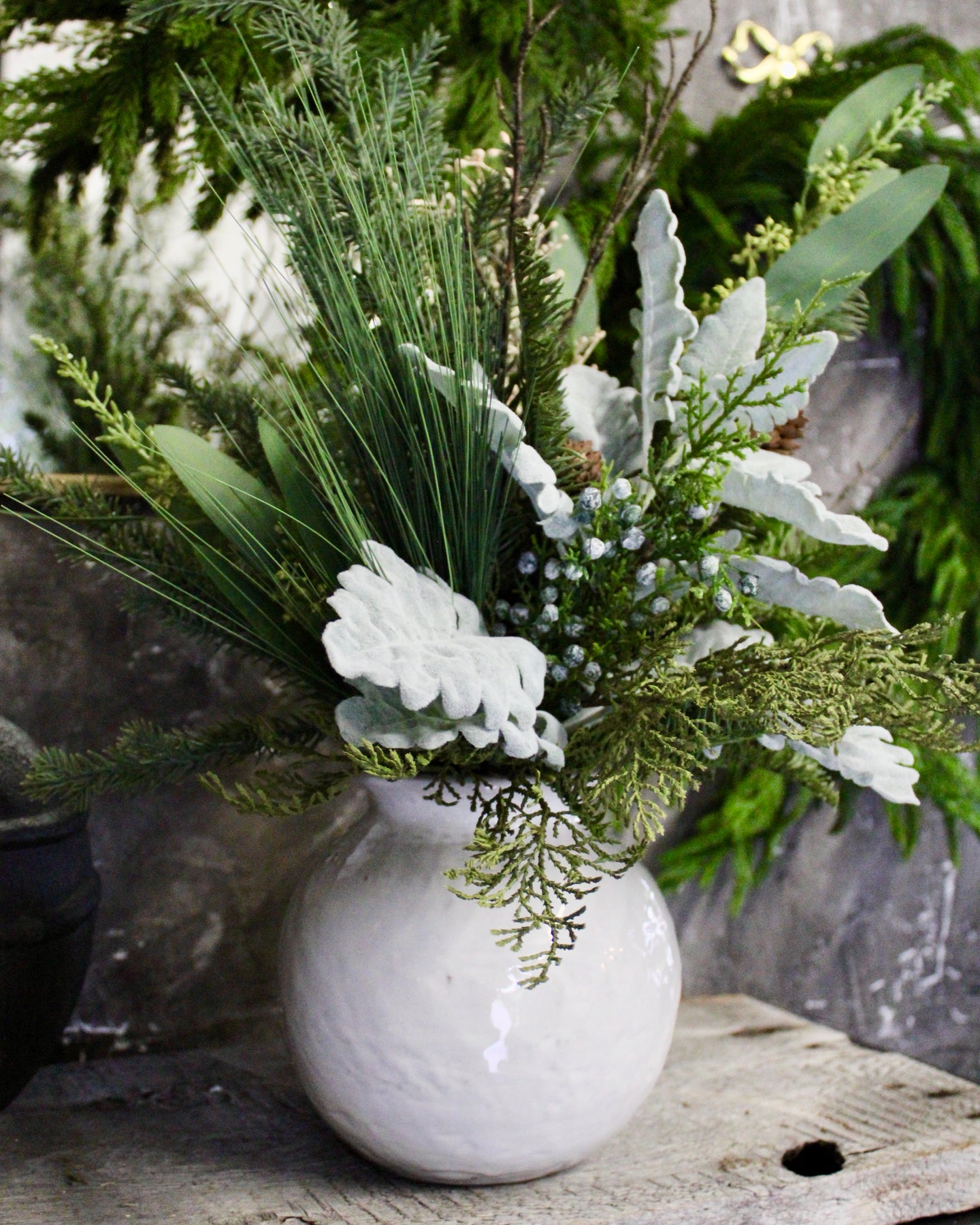 This elegant faux winter arrangement is designed for effortless styling—simply drop it into any vase or pot to instantly elevate your seasonal décor. Crafted to capture the serene beauty of winter, it offers a lasting solution to celebrate the season without maintenance. Perfect for adding a touch of sophistication to your home or office throughout the colder months.